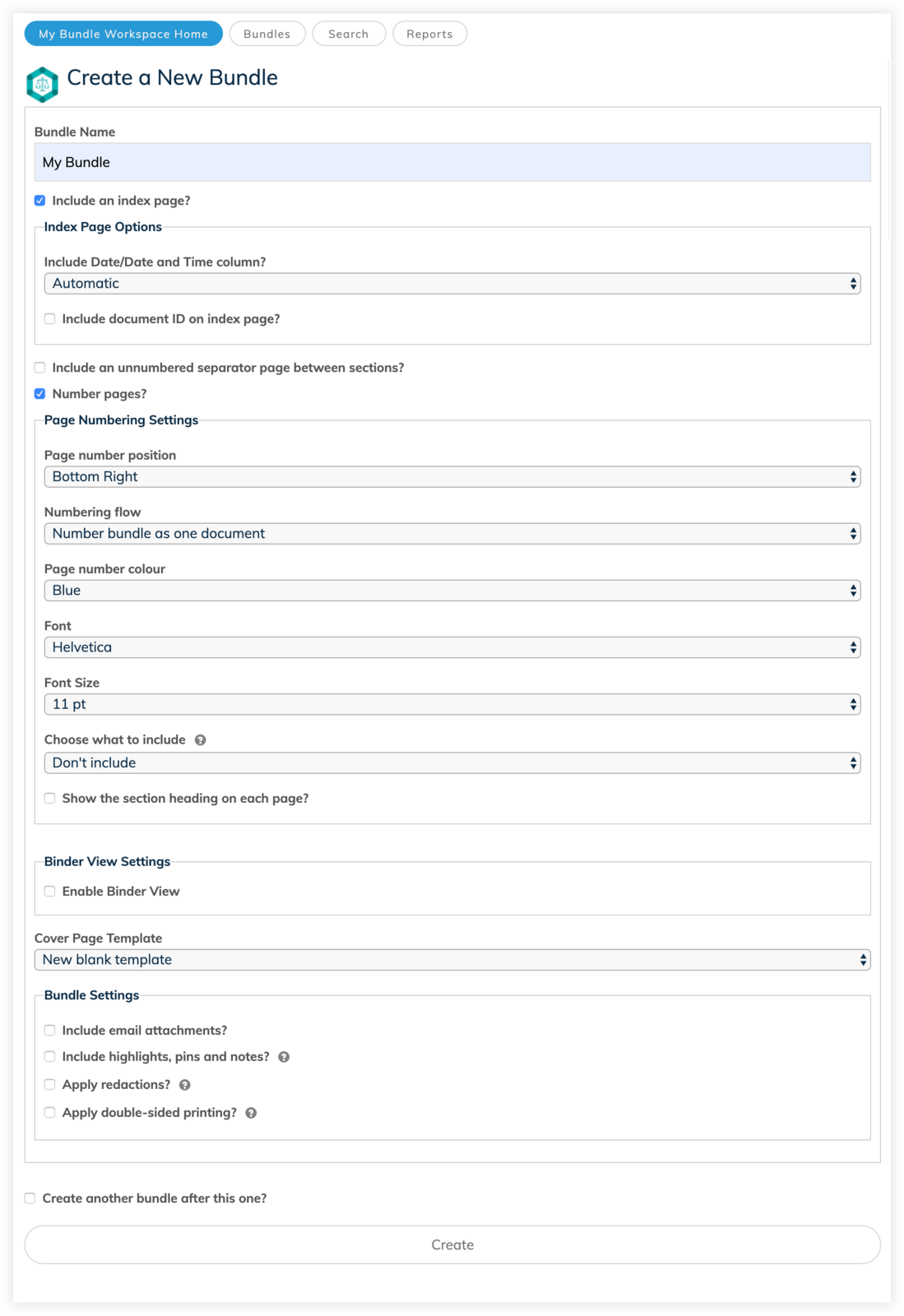 Customisable features within our bundling tools include your cover sheet, spine labels, font size, colours and format, pagination options, and section specifications.